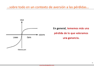 Daniel Kahneman, junto a su amigo Amos Tversky, de los que tanto hemos hablado en nuestro blog, desarrollaron en los 80 la prospect theory. Uno de los componentes más interesantes de esta teoría es la parte que define el dolor que causa una pérdida. La aversión a las pérdidas: a las personas nos duele más una pérdida de lo que nos alegra una ganancia similar. Esto es, nos hace más infeliz perder 100 € que feliz ganarlos.
