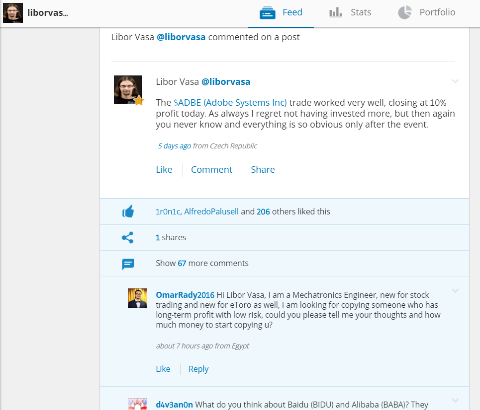Por ejemplo, en eToro existe una especie de muro (como el de Facebook) donde el trader puede ir explicando porque está haciendo esas operaciones y los seguidores pueden preguntar y proponer operaciones abiertamente al experto.