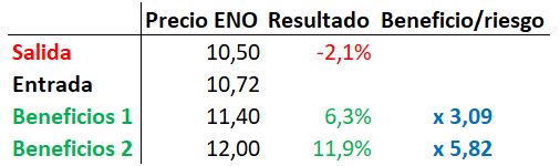 Con estos números, mi estrategia es poner un Stop cercano en la zona de 10,50 (incluso algo menos para la volatilidad) y un Take profits en la zona alta de los 11,40 o 11,45. Con esto, apostamos a que el volumen comprador aparecerá pronto y nos vamos a por una rentabilidad mínima del 6% con un riesgo del 2%.