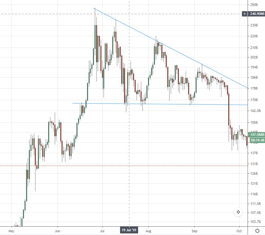 Ya sé que a muchos os dan alergia los gráficos y las figuras, pero a mí me funciona y me evita estar comprado cuando todo se desmadra. Esta misma figura ya la vimos en el bitcoin hace unos años e inclusoe hablé sobre cómo aprovecharse de ella. Os dejo el gráfico porque igual os recuerda un poquito al IBEX de ahora. ¿No es curioso?