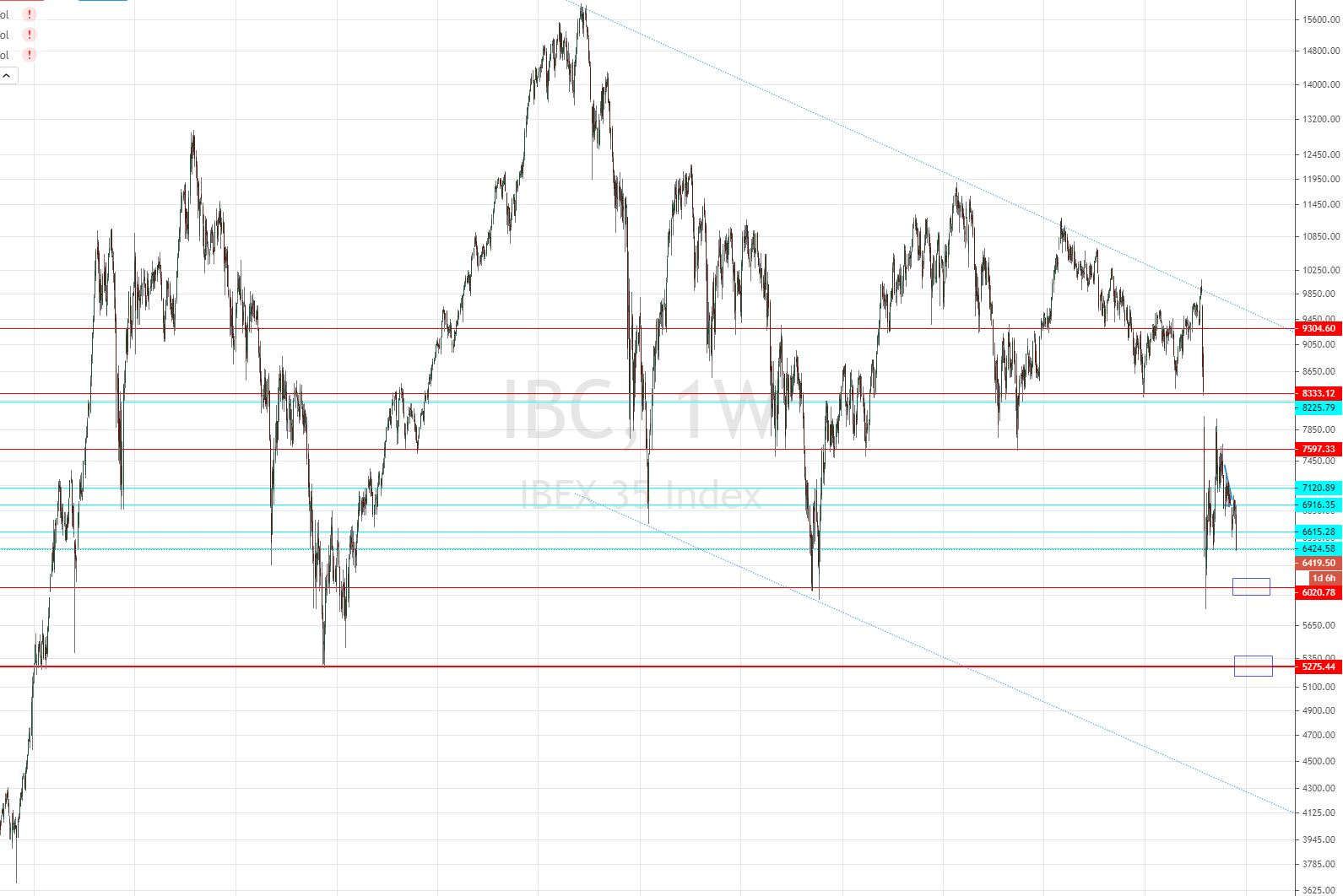 Una opción sería entrar comprado en la zona de los 5.900-6.000 puntos con 2.000€ y guardar los otros 3.000€ por si llegamos a los mínimos de 2012. Es una forma de terminar invertidos en precios muy jugosos para el IBEX sin preocuparte demasiado por los movimientos intermedios e incluso pudiendo dejar las órdenes puestas hoy mismo.