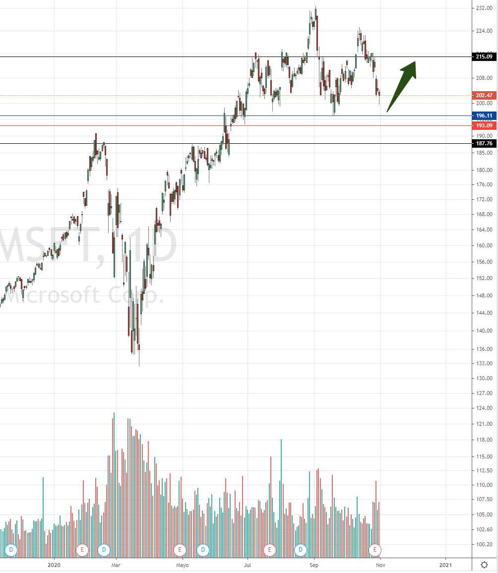 A día de hoy, tenemos a la acción peleando los 200$, si finalmente cae a la zona de los 196$ pensamos que es un momento interesante para activar compras a corto/medio plazo.