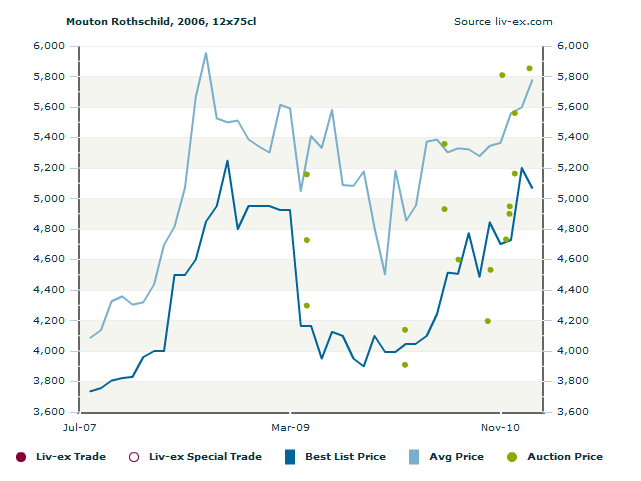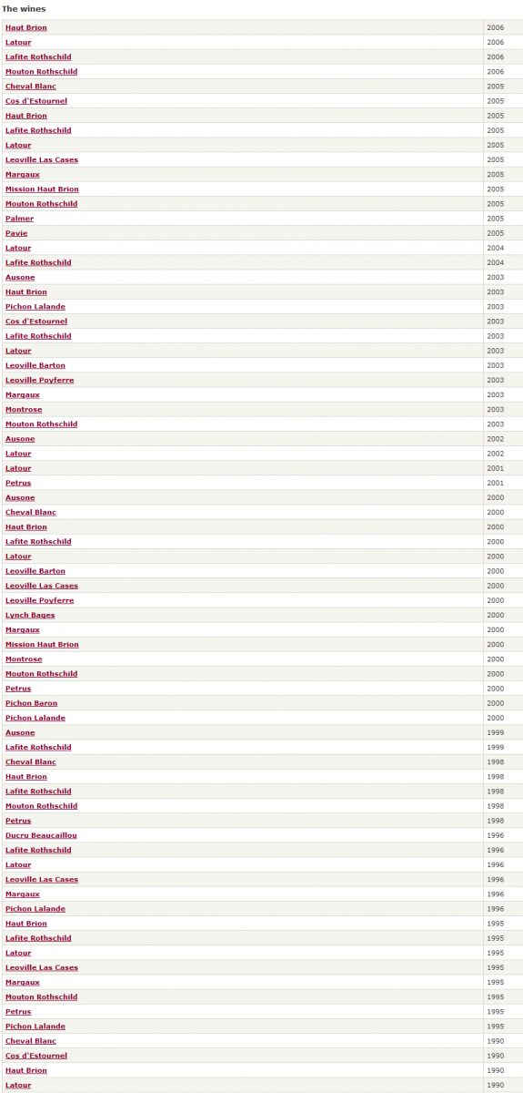 Si pinchamos ( versión de pago) en un vino como por ejemplo un "Mouton Rothschild 2006" esto es lo que obtenemos