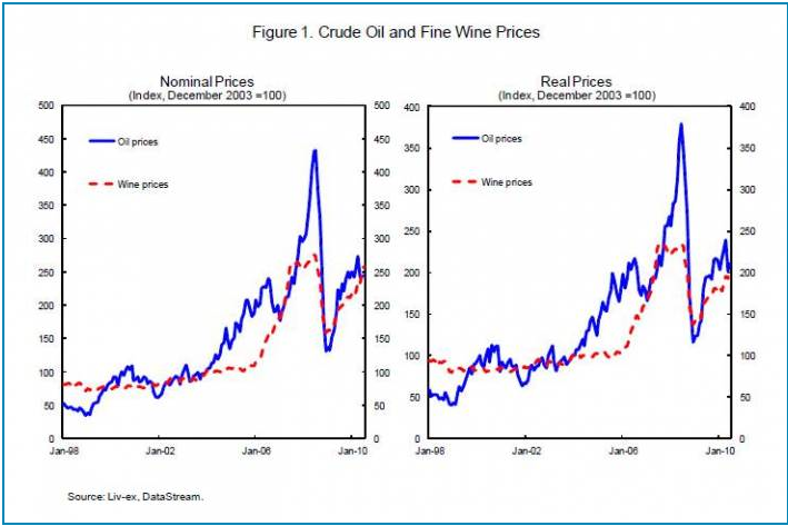Un post de wineeconomist de enero 2011, comenta la correlacion entre el precio del crudo y el precio del vino.