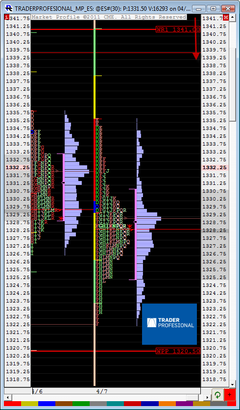 La sesión de hoy viene precedida por un profile overnight en el que de nuevo predominan los compradores y están intentando llevar el precio a la resistencia que llevamos toda la semana mencionando en la zona de 1341. En la sesión de ayer destacó la caida en la que pusieron como escusa un nuevo terremoto en Japón , pero lo cierto es que la bajada terminó justo en una zona de profile donde debíamos tomar posiciones largas, como así se dijjo en el análisis de ayer y funcionó al tick 1322.25. Para hoy se plantea lo siguiente: