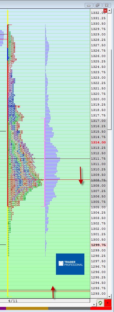 - Shorts en la zona de mayor volumen de la semana pasada en 1309; si no aguanta esta zona podríamos intentarlo de nuevo en la parte alta de la distribución overnght en 1314.25 , donde el precio no debería pasar de aquí.
