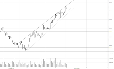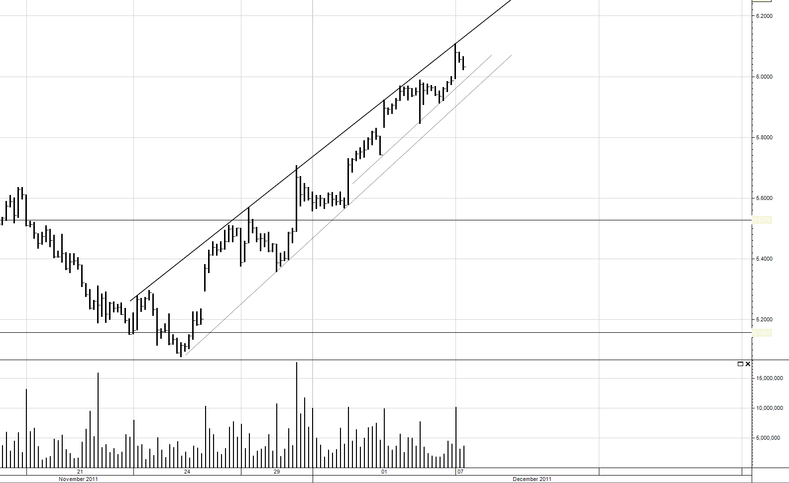 Aquí vemos como la subida se puede canalizar dentro de una cuña o canal contractivo. El movimiento de precios es cada vez más estrecho y cuando esto ocurre suele producir roturas importantes.