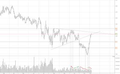 Si te fijas el patrón de volumen estos últimos días es el mismo que para Popular, el precio ha reaccionado de una forma similar y las implicaciones en general son parecidas.