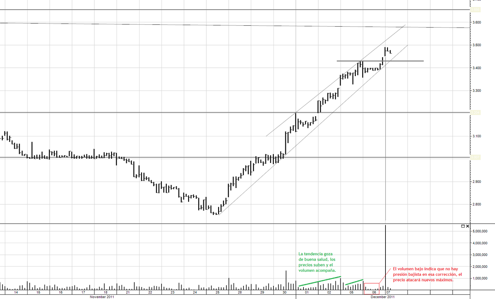 Si hacemos caso del volumen ya sabes que una tendencia, tanto alcista como bajista, necesita el volumen para ser sostenida, cuando una tendencia sube o baja sin que el volumen crezca, esa tendencia no es seguida por los profesionales del mercado.