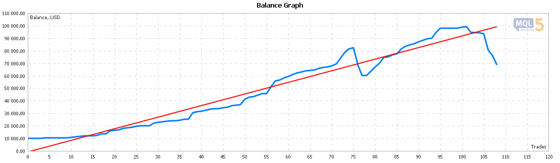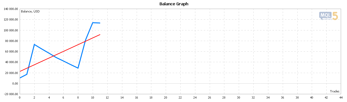 Comentario: Clarísimamente un robot de concurso. Tenía las mismas posibilidades de quedar delante como detrás. Con semejante drawdown (82,32%), y tantos pocos trades (11), me parece curioso que parara de hacer trades con tanto capital. Si a los pocos trades, le sumamos que solo acertó 4, me parece que los astros se alinearon con él para ganar los $40.000 del concurso. Espero que tenga un robot más consistente para invertir el premio en el mercado.