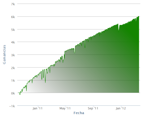 Si os fijáis en el gráfico tiene caídas repentinas que recupera rápidamente hasta que un día… No se recupera. A ForexCruiseControl tarde o temprano le pasará lo mismo, si alguien lo sigue que sepa a que se enfrenta y que se prepare para soportar el Drawdown.