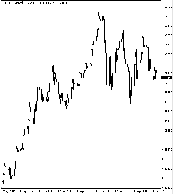 MN1 – El mercado es alcista, ultimamente se ha vuelto lateral por culpa de la crisis y estamos todos dudando de si el euro subirá, se estancará o bien caerá fuerte... A partir de las tendencias no podemos sacar mucho más.