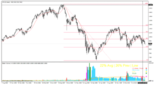 Por último observar como en cierres semanales entre finales de 2008 y principios de 2009 se ha formado una potente figura de hombro cabeza hombro con ruptura, además por encima de la media de 200 sesiones.