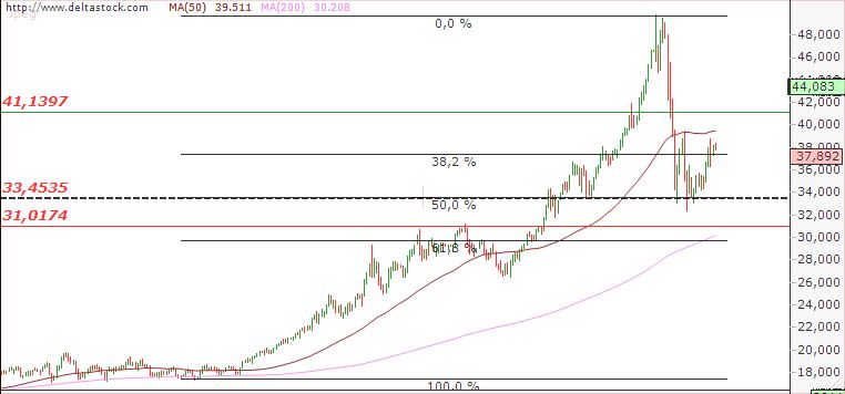 Entrada larga en 33, 45 con un stop en 31,01 como objetivo tenemos la zona de 41,13