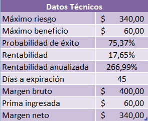 Esta semana he optado por una operación con filosofía delta neutral y que requiere poco capital. Recuerda que no todas estas ideas acabaran convirtiéndose en posiciones reales de mi portfolio y solo haré seguimiento de alguna de ellas.