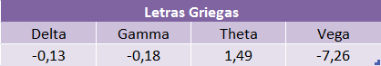 Para mí siempre es importante vigilar las griegas aunque en los primeros días de vida del trade no las suelo prestar tanta atención. En este caso las letras griegas para dos contratos son (las griegas están referenciadas al SPX):