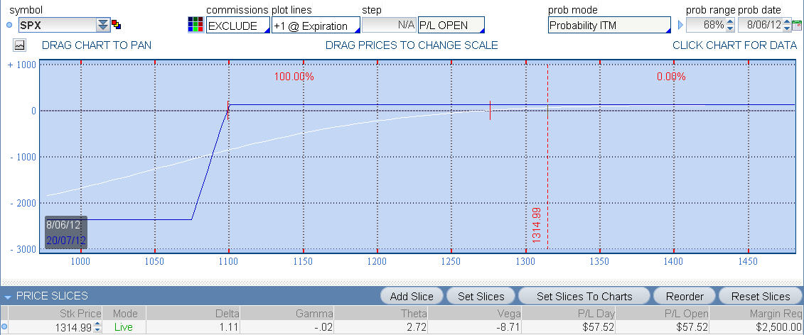 En este caso en mi plan de trading tengo previsto llevar la posición hasta expiración también (esto no es siempre así). Una salida primaria podría ser al alcanzar el 3% de beneficio y la salida temprana podría ser si haces un 2% en una semana.