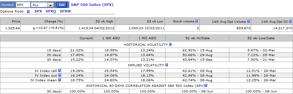 En el apartado "Symbol" he puesto el SPX para obtener los datos de volatilidad del SP 500. Lo primero que obtengo son los datos numéricos que adjunto a continuación: