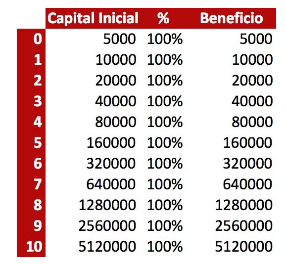 Así que el miedo a perderlo todo juega en tu contra y va a hacer que no puedas ir duplicando año tras año, en algún año vas a parar de arriesgarlo todo.
