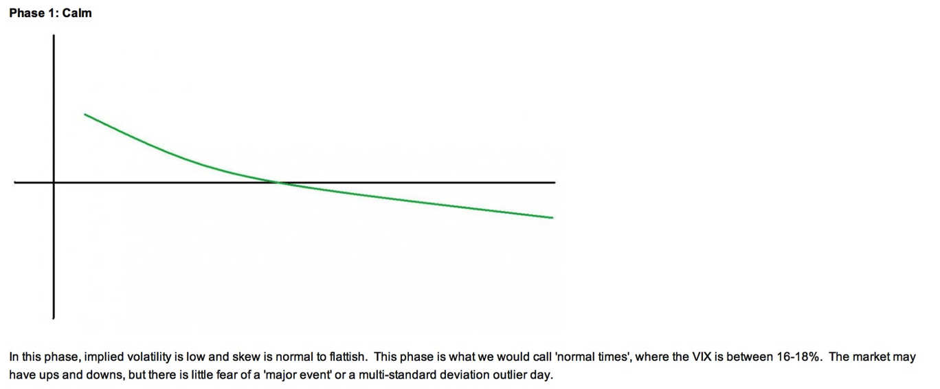 Si lees entero el post de Mark veras 3 gráficos más con la teoría completa. En el Trading Group estamos monitorizando al detalle como está el skew de volatilidad del SPX, del RUT y del OEX y buscando detectar cuando se da el cambio de fase. Actualmente estamos en fase 1 lo que indica cierta calma o ausencia de miedo en el mercado.