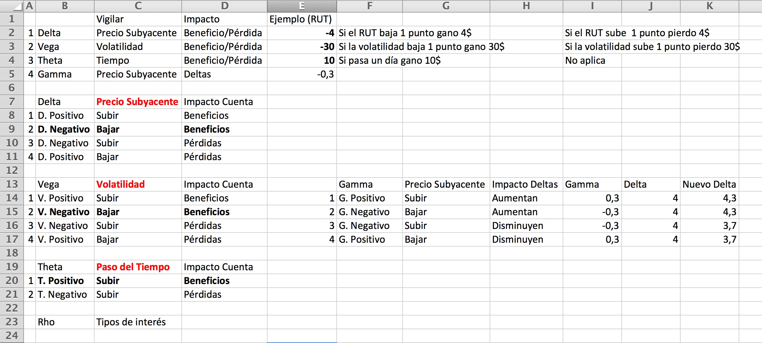 La estructura del webinar fue muy sencilla: ir explicando apoyándome en un Excel que significa cada una de las tres letras griegas principales (delta, vega y theta).