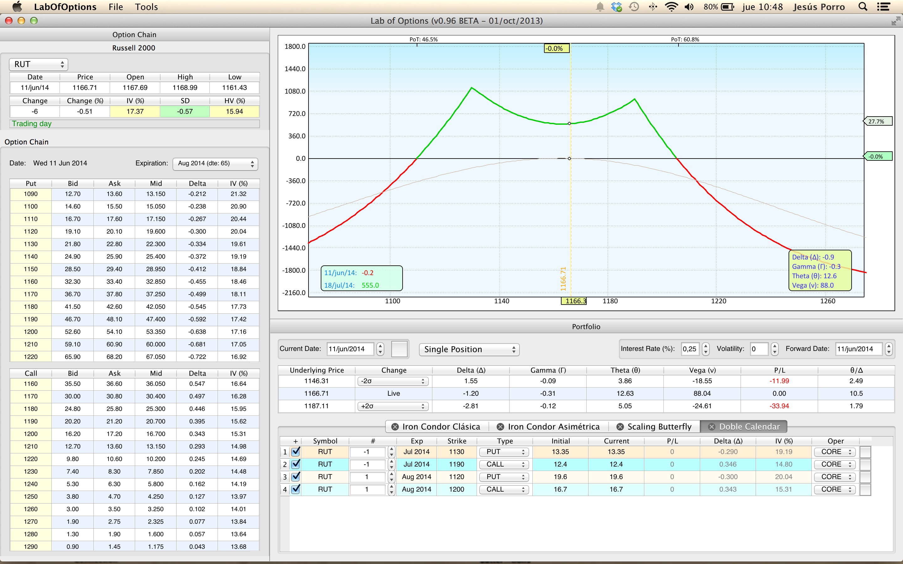 En la última imagen tienes una doble calendar (podrías hacer una triple calendar o una doble diagonal también) que en combinación con la iron condor clásica podría ser una buena forma de entrar al mercado.