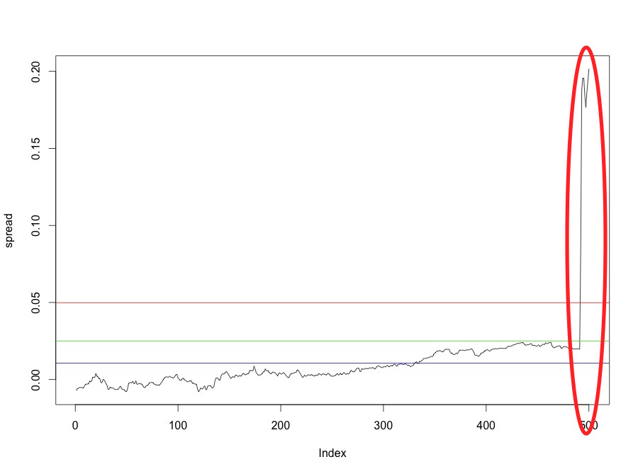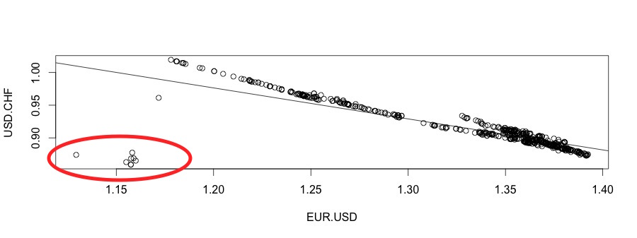 En el post con más visitas que he publicado (Una reflexión sobre Arbitraje Estadístico. Julio 2014) hablé precisamente de un modelo simple de arbitraje estádistico entre los pares Forex EURUSD (Euro-Dólar) y USDCHF (Dólar-Franco Suizo). Ironías de la vida, el pasado 15 de enero esta estrategia habría sucumbido ante un gigante "cisne negro". Lo interesante viene ahora, veremos cuál sería la situación actual si hubiera seguido el modelo citado. Os sugiero que antes de seguir leyendo, echéis un vistado al post que publiqué para una mejor comprensión.