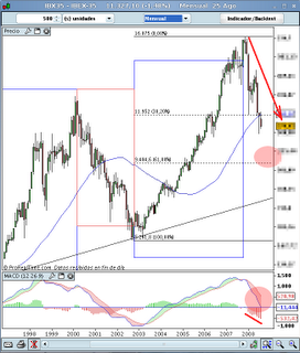Esta mañana vengo pensando en el Ibex35, y en un gráfico mensual que se subio por aquí no hace mucho, en el que "pronosticaba" que nos acercariamos a los 9.400 puntos.