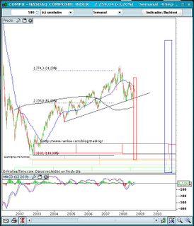 He estirado el gráfico para poder mostrar donde vuelven a juntarse, como comentaba, todas las lineas, y donde creo "que puede pasar algo". No he buscado intencionadamente que ese punto de conexión coincida con el año 2010, ni mucho menos, pero me resulta curioso que coincida en él precisamente y que exista la Teoria de Benner, la cual nos indica que ese año será de un nuevo máximo, al igual que lo fue el año 2000.