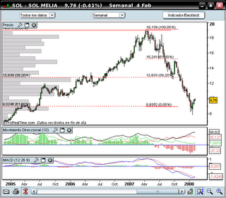 Tengo que confesar que estuve a punto de tomar una posicion en SOL el pasado septiembre-octubre confiando en un rebote en los 14 Eurs, zona que representaba una corrección del 38%. Y menos mal que no la realicé porque ha continuado bajando desde entonces.