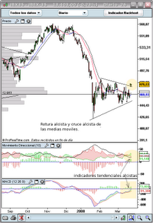 Por el momento es solamente una posibilidad, pequeña ella, pero parece que hay una señal de entrada en el gráfico diario del Ibex35. Particularmente, prefiero las señales en gráficos semanales para poder operar con algo mas de tiempo y tranquilidad pero por ahora es lo que tenemos.