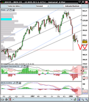 Mal que nos pese, la tendencia bajista continua en los gráficos semanales, por lo tanto, salvo algún día con subidas del 2% que no hacen otra cosa mas que afilarnos los dientes si estamos fuera del mercado, ó darnos una pizca de esperanza en nuestras posiciones, el dolor va a continuar al menos los próximos meses.