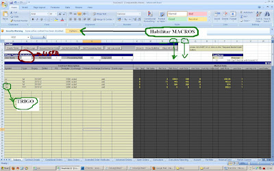 En la casilla Mode: ADD, en Action: Buy en la línea del Trigo, Sell en la de Maiz, Cantidad 1, Tipo de orden: MKT. En Statement simplemente señalamos la casilla A8 de la hoja “Spreads”= a 4. La formula quedaría algo así como: ='Spreads'!A8=4