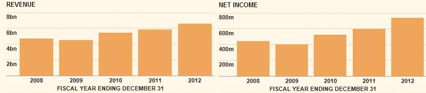 En el año 2012 obtuvo unas ganancias brutas de 6.610 millones de euros, superando los 5.816 millones de 2011 y los 5.418 millones de 2010. Esto supone un aumento del 13% con respecto al año anterior .