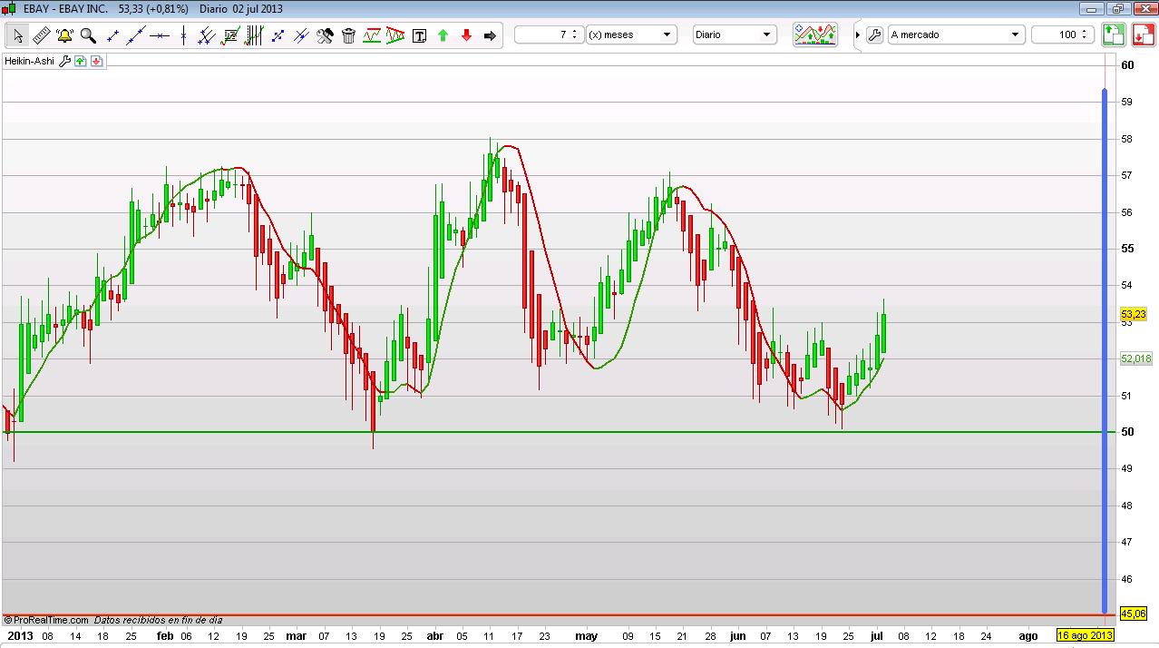 Con estos datos quizás no se ajusta perfectamente a una gran compañía para mantener a muy largo plazo, pero se le puede sacar ventaja con otros métodos como son las opciones financieras. Dada la evolución en este año la opción más ventajosa es la venta de un Put Spread con Strike 50 y 45; con vencimiento en Agosto (viernes 16).