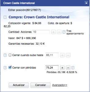 Para que te hagas una idea, esto sería colocar un StopLoss en tu broker (en el campo que dice "Cerrar con pérdidas").