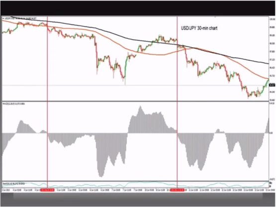 Respecto a las medias usadas para entender la tendencia del precio James utiliza dos medias, por un lado una media rápida de 100 y por otro lado una media más lenta de 200. De esta manera, el COMA primero busca que en una tendencia bajista, la media móvil de 200 debe estar siempre por encima de la de 100, y viceversa en una alcista.
