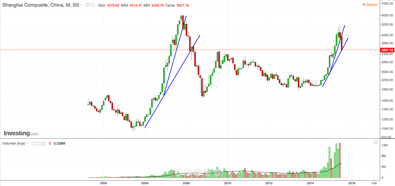 Eso es lo que ha pasado en china en los últimos meses, una tendencia alcista, una burbuja, un estallido y ahora la resaca de la fiesta, una bajada del -33% en Shangai y sumando.