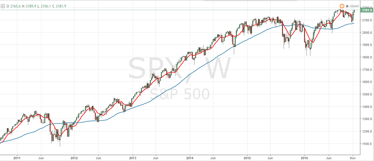 El SP500 vuelve de las elecciones americanas con ganas de buscar nuevas cotas alcistas. Después de su letargo desde el verano de 2015 hasta prácticamente el verano de 2016, fase en la que el mercado se movió de forma lateral, el índice comienza a dar signos de fortaleza marcando nuevos máximos históricos.