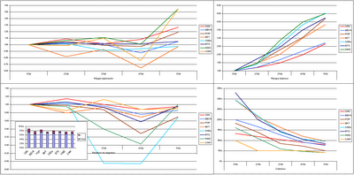 Sigamos. Vamos con unos gráficos que pueden ser muy ilustrativos. Son datos trimestrales (trimestre a trimestre). Aunque hemos añadido aquí a alguna Caja, olvidémonos de momento de ellas (las publicaciones de resultados de las Cajas son bastante más confusas y, hasta este punto, no tengo del todo claro su validez para el análisis).