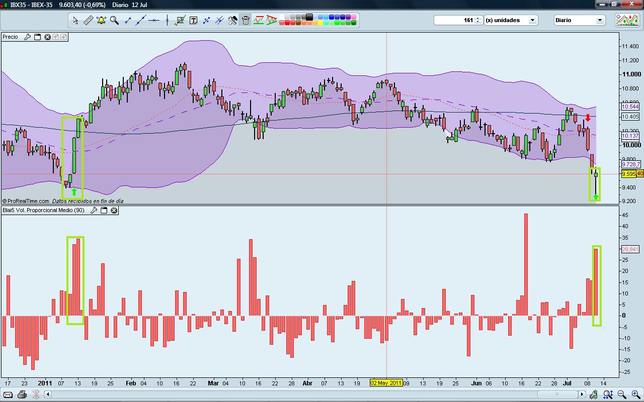 - Curiosamente, se ha estado negociando en el intradía, el volumen más alto "con gran poder", destacando, a pesar de que estuviera en valores más altos que el mínimo de sesión. Nos puede dar una pista, de que los valores a cierre de hoy han sido bastante interesantes.