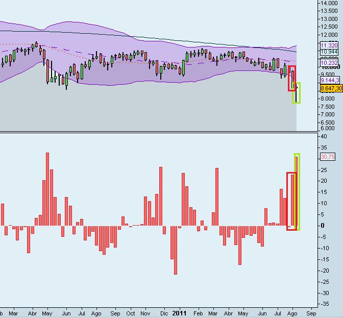 Intentaremos ver con otros gráficos donde podría ir la bolsa en los próximos días, semanas.