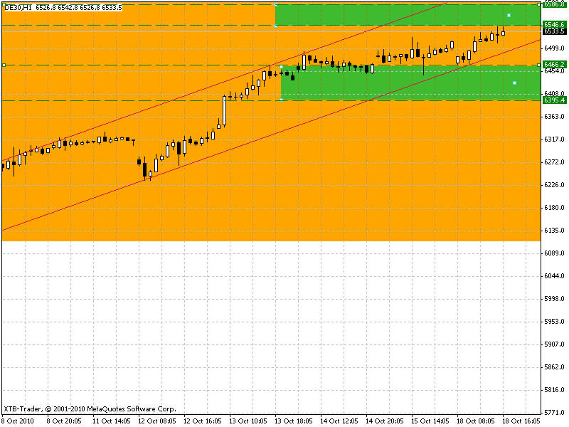 - Compra de una opción “European digital range” sobre el DE30 , con vencimiento 19 Octubre de 2010, dentro de un rango limitado entre 6544 y 6586, escogiendo la cantidad a recibir “pago” 1000€. Por esta opción se pagará una prima de 256 euros