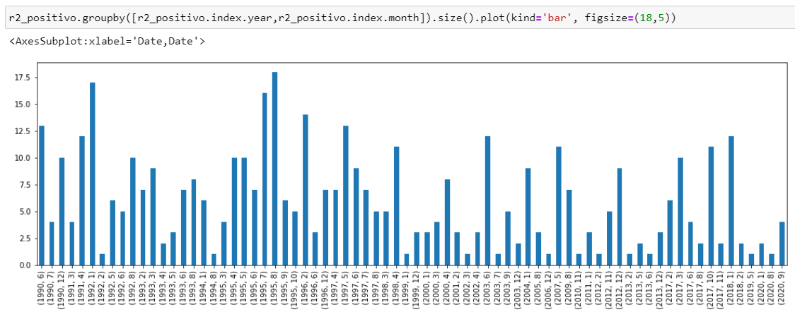Bueno, pero es medio sesgado, que del top10, encontremos en la primera tampoco es para alarmarse, veamos algo mas general, por ejemplo, si quisiéramos contabilizar por mes, de todos los meses en el histórico cuantos eventos de correlación positiva hubo en cada mes?