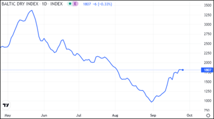 Datos de comercio o exportaciones de grandes países los cuales aportan una gran parte de la actividad al comercio mundial, por ejemplo China o Corea del Sur. En relación al transporte, destacar también índices de comercio como el Baltic Dry Index (BDI) índice que se creó en 1985 y que mide la evolución del transporte marítimo de las principales materias primas. Si el índice sube significa que la demanda de materias primas aumenta y con ello la producción y el crecimiento económico mundial. Debajo cotización del BDI durante los últimos meses.
