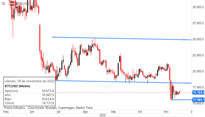 Un inversor debe ser consciente de la alta volatilidad de este tipo de activos y si decide por adentrarse en los mismos, quizás los menos volátiles sean las dos criptomonedas más negociadas: Bitcoin (BTC) y Ethereum (ETH) Ambas han perdido aproximadamente un 75% desde los máximos alcanzados en 2021 en su relación el billete verde (69.060 $ y 4.870 $ respectivamente) A pesar de todo ello y de la situación actual, ambas se encuentran “relativamente estables” durante las últimas horas con el BTC cerca de los 16.700 $.