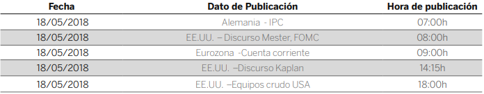 El euro/dólar cotizó en 1,1794 y el mercado de divisas está muy pendiente de la cotización de las divisas emergentes por la apreciación del dólar. El precio del crudo vuelve a repuntar, situando al Brent en 79,43 dólares por barril y el mercado ya descuenta la posibilidad de una caída en las exportaciones de Irán.