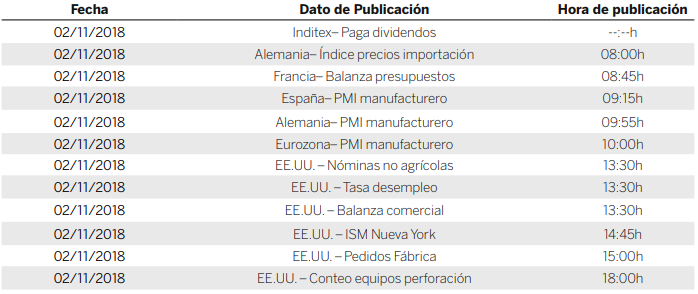 Signo mixto en los mercados europeos en la primera sesión del mes de noviembre, tras vivir el peor mes de octubre desde el año 2012. La aproximación entre EE.UU. y China que relaja las tensiones arancelarias y la posibilidad de un acuerdo entre Reino Unido y la Unión Europea sobre la industria financiera podría facilitar el Brexit apoyaron a los índices europeos durante la sesión. Hoy los analistas estarán muy pendientes de la publicación de los resultados del test estrés de la EBA en el sector bancario que se publicará a cierre de mercado.