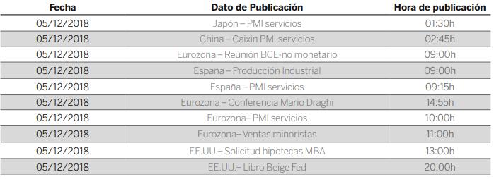 A nivel macro en Europa, el Índice de Precios de Producción de octubre interanual creció del 0,6% al 0,8% y el Índice de gestores de compras de construcción de Reino Unido se revalorizó levemente de 53,2 a 53,4. En EE.UU. el Índice Redbook interanual de noviembre cayó del 7,9% al 7% al igual que el ISM de New York de 69,8 a 67,8.