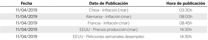 Los mercados europeos registraron ligeras subidas exceptuando el Ibex-35 y el FTSE MIB que cerraron planos por la ponderación del sector bancario en los mismos, tras las declaraciones de Mario Draghi una vez finalizada la reunión del BCE. El discurso del presidente del BCE no cambió con respecto a la anterior reunión y afirmó que todavía era demasiado pronto para dar detalles sobre la nueva TLTRO y sobre un posible mecanismo de compensación de los tipos negativos para el sector bancario. Este último punto fue el que hizo girarse a la baja a todo el sector bancario. En EE.UU., los principales índices de Wall Street se anotaron subidas siendo de nuevo el Dow Jones (+0,04%) el índice más rezagado por el lastre de Boeing (-1,09%). Ayer comocimos también las actas de la FED que mostraron un lenguaje menos suave de lo esperado y cierta división entre los miembros del FOMC, pero no reflejaron ningún cambio realmente significativo en el mensaje del banco central estadounidense